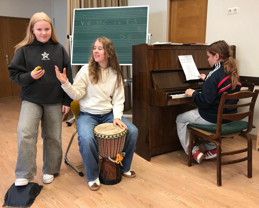 Mūsu skolas mūzikas stundās skolēni ne tikai klausās, bet arī izpilda dziesmas dažādās valodās – latviešu, angļu, spāņu. Šoreiz uzdevums bija dziemu papildināt ar instrumentālu pavadījumu pēc savas labpatikas un iespējām. Daži izvēlējās koka klaves, daži marakusus, citi spēlēja pavadījumu uz ukuleles vai klavierēm.