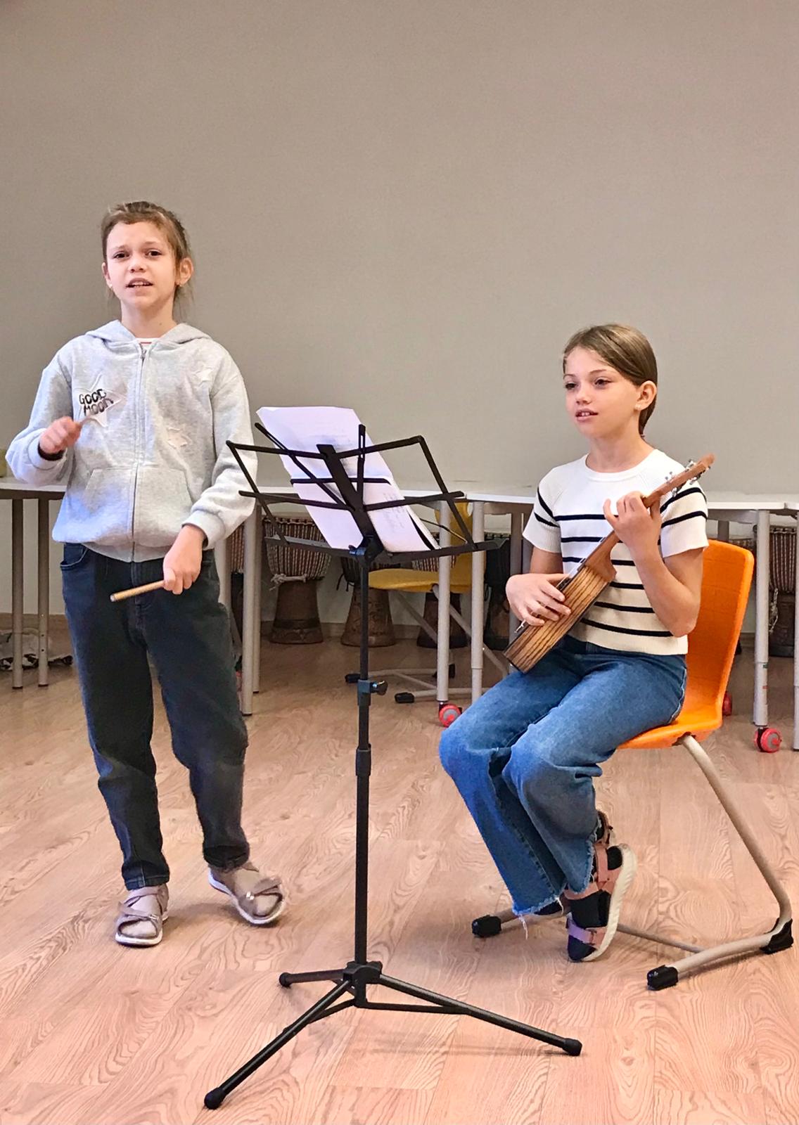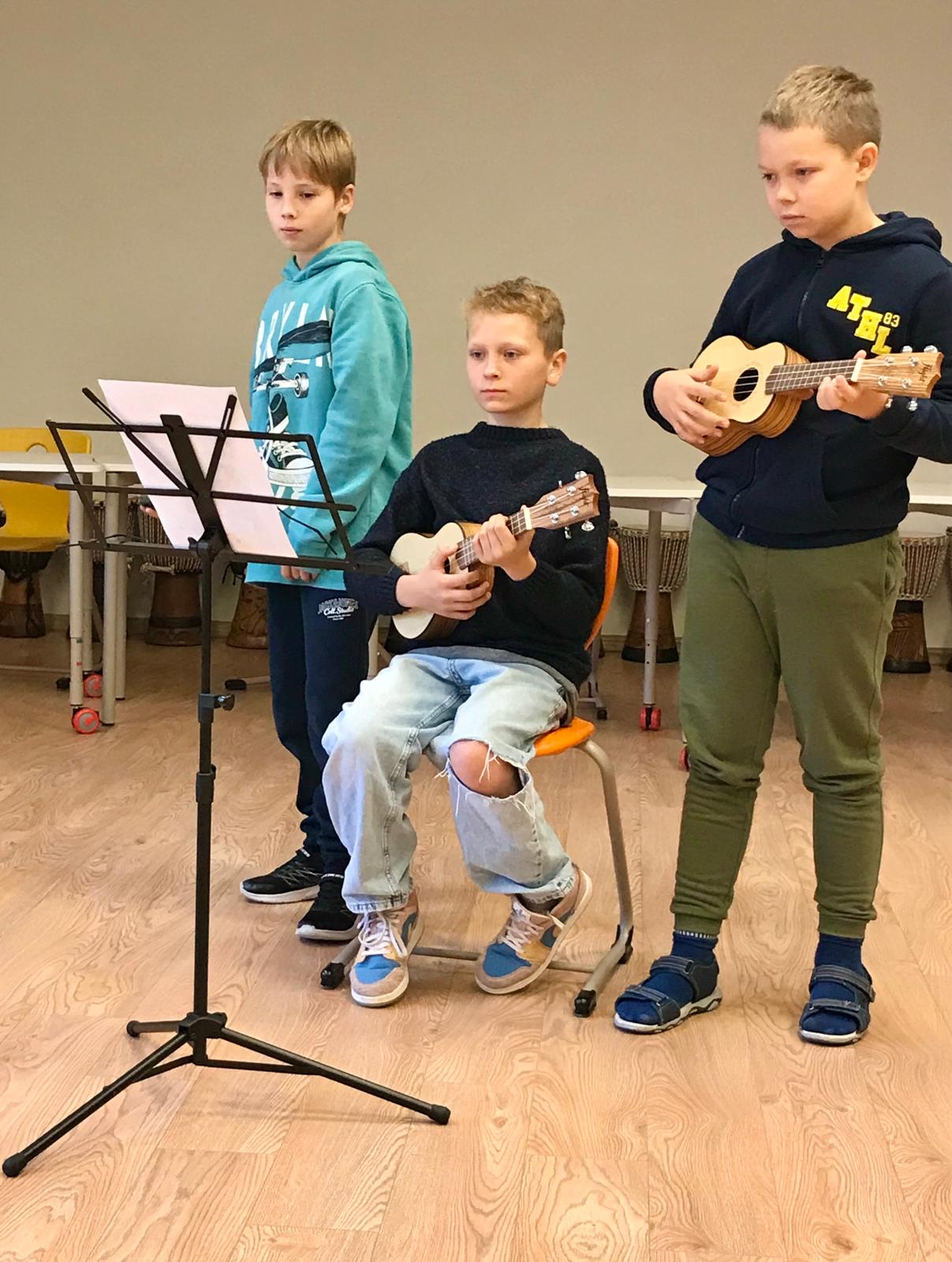 Mūsu skolas mūzikas stundās skolēni ne tikai klausās, bet arī izpilda dziesmas dažādās valodās – latviešu, angļu, spāņu. Šoreiz uzdevums bija dziemu papildināt ar instrumentālu pavadījumu pēc savas labpatikas un iespējām. Daži izvēlējās koka klaves, daži marakusus, citi spēlēja pavadījumu uz ukuleles vai klavierēm.