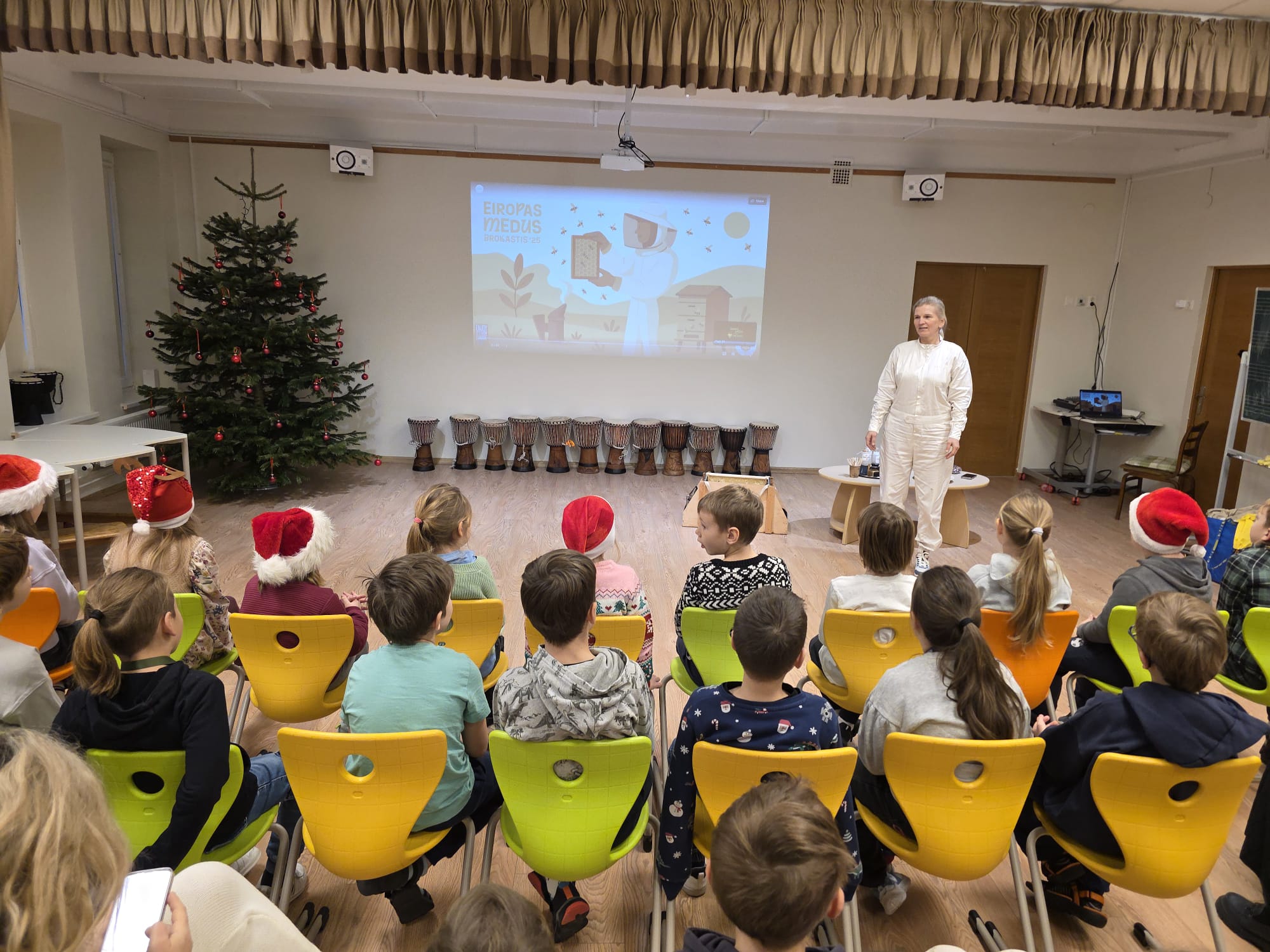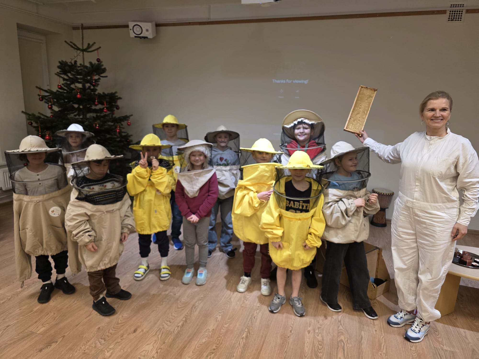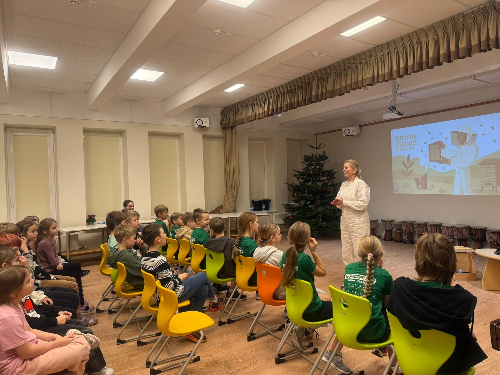 Decembra sākumā pie mums jau atkal viesojās biškope Dace Purvinska, kura 1.-4. klases skolēniem aizraujoši pastāstīja par bišu dzīvi, medus un bišu nozīmi dabā, medus tapšanu un biškopja ikdienu, un ielūkojās medus vēsturē. 🐝