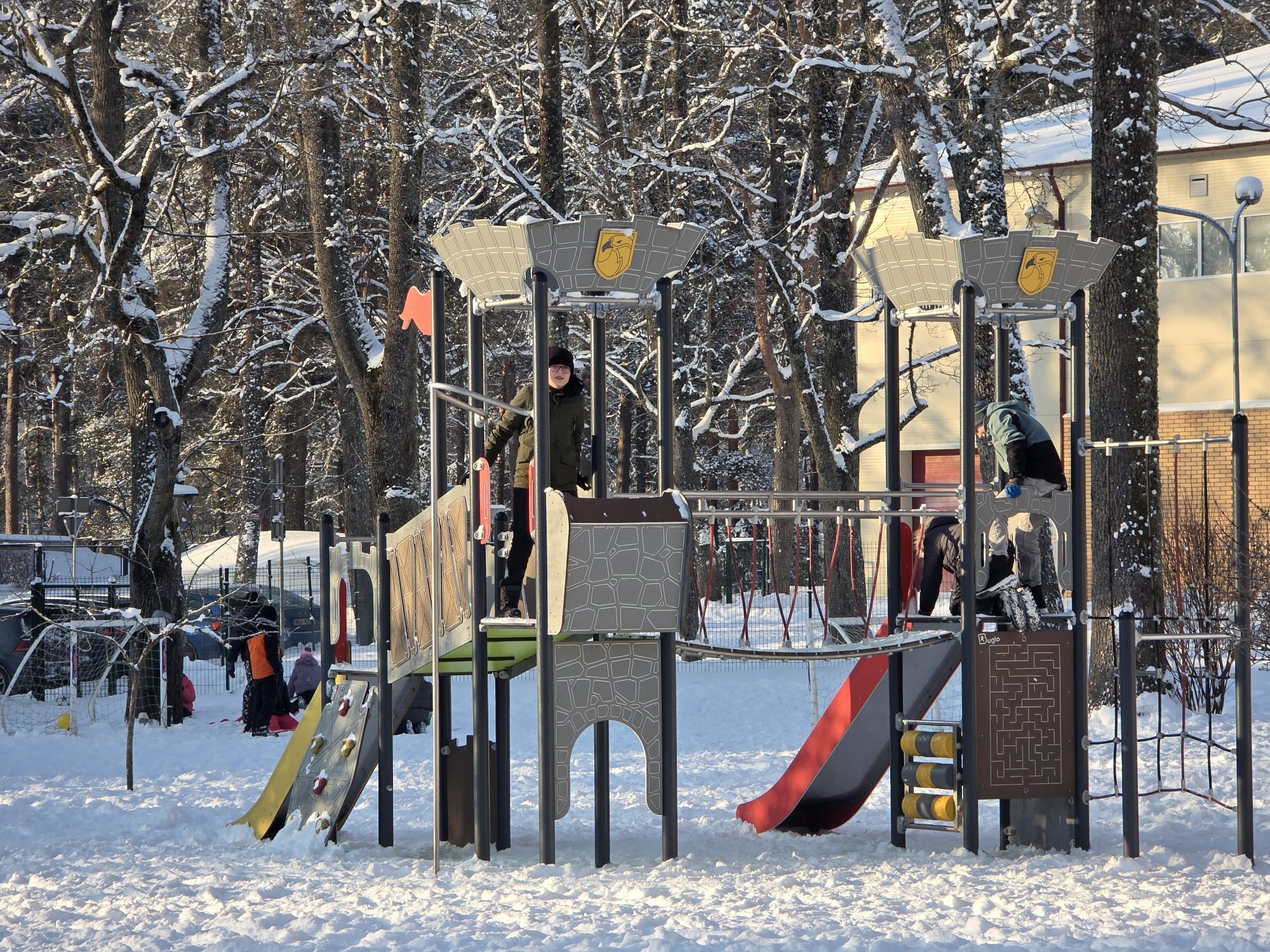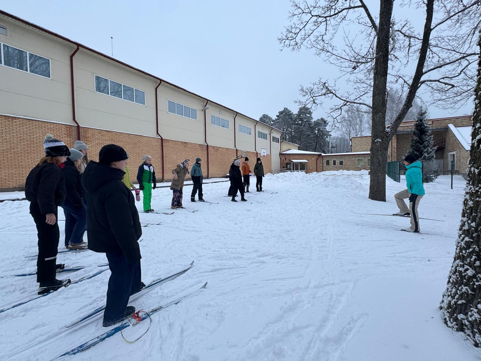 Garajos starpbrīžos un pagarinātās dienas grupas laikā bērni dodas ārā, braukā ar ragavām un izbauda sniega priekus, sporta stundās slēpo, savukārt, klases stundu vai pulciņu ietvaros skolēni dodas arī pārgājienos, veic ziemīgus eksperimentus un/vai bauda ziemas priekus uz kalniņiem.