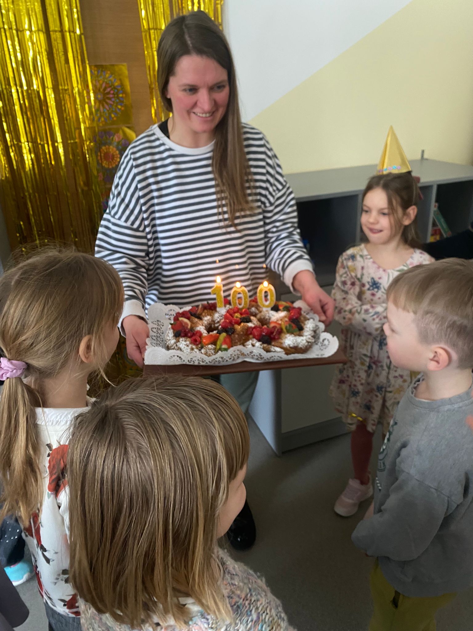 Noslēgumā katrs saņēma zelta medaļu par sasniegtajām 100 dienām un gardu kliņģeri!🍩