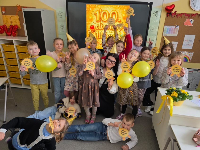 Mūsu pirmklasniekiem šodien bija īpaša diena – 100. diena skolā! 🎉