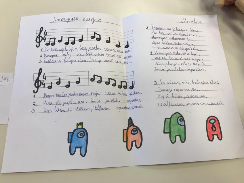 Mūzikas stundās 4. klase iejutās komponistu lomā un radīja savus oriģināldarbus par pašu izdomātiem fantāzijas tēliem. 🎼✨