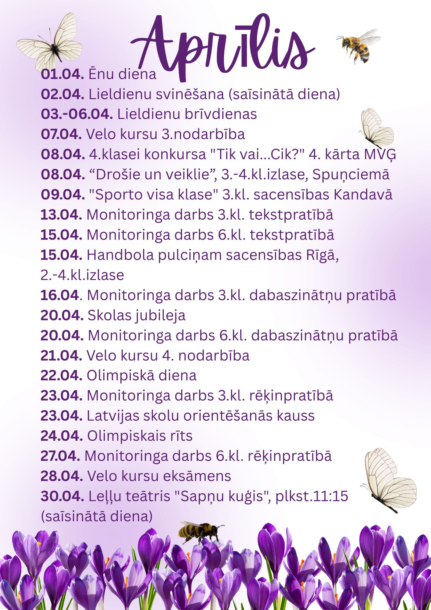 Aprīļa 2026 pasākumi